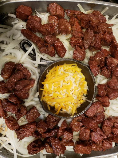 Food is nicely cooked in the back but then placed on these flat skillets at your table that are very poorly heated via gel flames. Good service. Nice people.