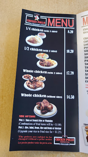 The chicken is fantastic. Waiting in the line on a Saturday took awhile. The staff speaks English and Spanish. I would take the food to go, eating in took awhile for the food to get to the table. My order was lost, but they quickly got a new order for me when I asked. Get extra sauce, the sauce is tasty. The half chicken is a good deal as you get two sides. I had the rice/beans and fries. Everything was delicious.