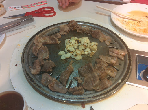 The place have lots of food to eat. When you first come into the store, the waiter greets you with a smile on their face. That makes people like me want to come back to this place next time. When you sat down, the waiter will give you a menu that ask you what meat you want to pick. After that, you could go and eat your all you can eat buffet stuff like sushi and other Korean food. On weekday, its usually not that crowd but on Sunday, itll be crowded and you might have to be sharing tables with other customer.