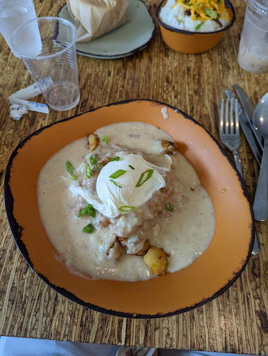 Poor service, bad decor, botched order. We arrived an hour after the bakery opened, and the first two things I asked for were already all gone. The cashier missed part of my order. When I repeated the order and asked if the sausage she had rung me up for was the plain hot dog on the kids menu, she said yes. Turns out it was not. It looked delicious, but I wasnt about to feed my 1-year-old a sausage smothered in onions and spicy mustard. When we straightened out the problem with the order and finished our meal, we saw that we were expected to clear our table. Thats fine; Panera Bread is the same way. But there was a sign that said, "BUS YOUR OWN TABLE. THIS AINT YA MAMAS HOUSE!" Ha ha, hilarious. Insult the customers you charged $15 for two biscuits and a hot dog. Looks like we were dupes here. Bayou should scrap the corny faux-vintage Cajun-esque signs all over the walls and provide some ctual Deep South hospitality.