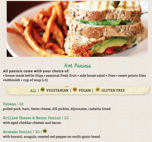 Id heard a lot about Busboys and Poets, so I was excited to check it out, especially since their menu is friendly to gluten-free freaks. I have gluten and dairy sensitivities, so I ordered the vegan avocado panini on GF bread. The bread was a potato bread (not healthy and terrible-tasting, IMHO). I got one slice (maybe two) of vegan cheese, and that was the only "protein." I ordered Dijon vinaigrette on my salad and got lemon vinaigrette, instead. The chocolate hazelnut GF cake was dry, and the icing was a basic milk chocolate buttercream; it reminded me of the Betty Crocker icing my mom put on class cupcakes as a kid. My tea was great. My husbands falafel sandwich tasted fine. Other peoples entrees looked good. Maybe the lesson is not to order vegan or GF here, but those menu options are one reason we came, so not liking them was pretty disappointing.
