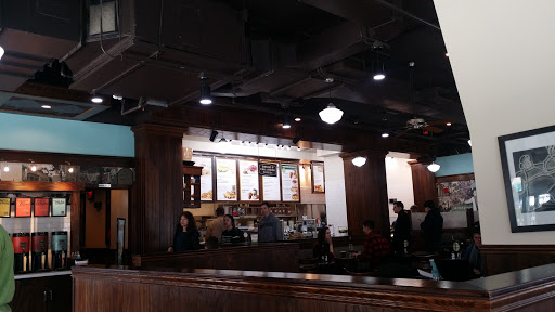 Very pleasant atmosphere. Great place to stop for a meal, snack, coffee,... conversation with a friend, or just sit and enjoy life. Convenient location near metro. Lots of great foods to choose from.