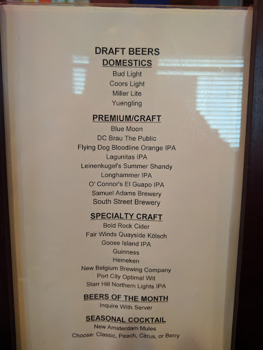 Great place to watch the game or fight because it does not get quite as crowded as other places around there. Food is good, beer is cheap, and it is close to the shopping center and kettler ice duplex. what else could you ask for?