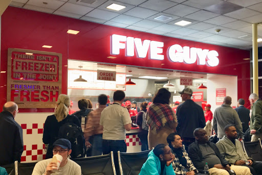 The food and super friendly staff made waiting for my delayed flight far less stressful. Five Guys burgers are pricier than most fast food places but they are definitely among the best burgers you can get from a franchise. Great beef, fresh salads, and tasty fries!