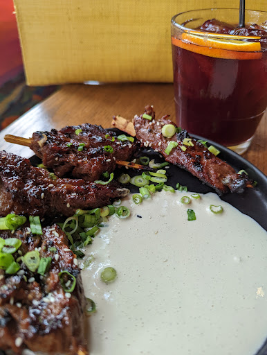 Several months ago we used to come here fairly often. The food was decently priced for small plates and did not dissappoint when it came to flavor. However we visited Friday night and that has changed. The menu is very different which was upsetting at first because our favorites were gone but we stuck it out and tried new ones. The sesame steak skewers, while flavorful, were so chewy it didnt matter. The tacos with chicken tasted instead of pork somehow and were not up to the same level as the Vampite tacos which are no longer on the menu. Owell maybe we will come back months from now to different food with better flavor.