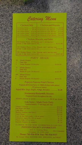 Every time I order, I wait at least 10 - 15 minutes for my food. People who order after me always seem to get their food first. Recently, Ive noticed that their food isnt the same at other Popeyes. Fries are different, biscuits are different, and they give you a small cup when you order a meal were as other Popeyes gives you a large.