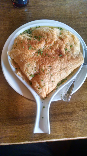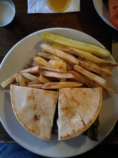 Went out for a light lunch on a Saturday afternoon. Weird medicinal/chemical smell when we walked in. Ignoring that, I had the potato soup (delicious) and a nice fresh salad with a wonderful Feta vinaigrette dressing. My daughter - the vegetarian - had a Portobello sandwich on a terrific bun. She was delighted, as was I. Waitress was cheerful and helpful, the place was quiet and relaxed. Reasonable prices. Terrific afternoon lunch spot.