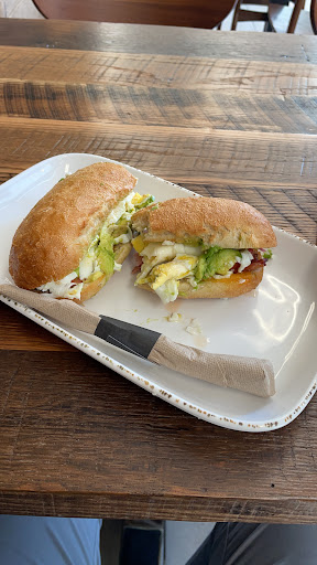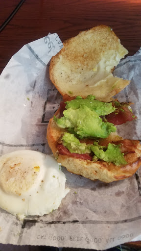 this place has a less corporate feeling than the other breakfast/sandwich/salad/coffee shop establishments in the area. best spot for the above mentioned in the immediate area. friendly staff. Rustic decor. Decent prices.