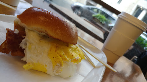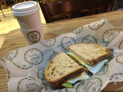 I love this place for breakfast! $4.50 will get you a great breakfast sandwich and a coffee! Also, the flavor syrups they use here (da vinci) are much better than those youll find at a lot of other coffee shops (monin, and even starbucks). So, if you like your vanilla lattes, I highly recommend sweet leaf.