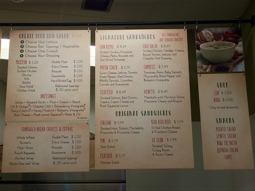 Fresh food and a nice location. Staff are helpful and quick. My favorite item is to get the San Remo salad with salmon instead of grilled chicken. The sandwiches are excellent and they give you the perfect portion of food.