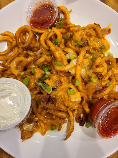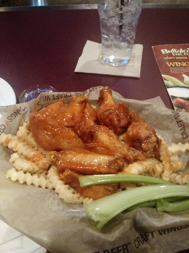 We came here on a Sunday evening in January because my wife wanted wings for dinner. We really like the loaded French fries, but the wings are just okay. We ordered 25 wings; 5 plain, 10 medium, 5 hot, and 5 hot honey BBQ. They all came out pretty crispy, but the sauce easily covered it up. The 5 plain wings we ordered for the kids were not as easy to cover up. I am a wing guy, so I noticed that the wings were all previously cooked and recooked for our table. I made a comment to the manager and they did offer a dessert, but ultimately they removed the loaded fries and the 5 plain wings. Will we come back, sure, but we will probably driver over to Buffalo Wild Wings, which is closer, because of the quality of the food.