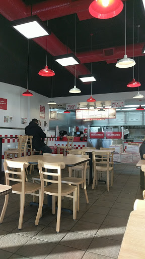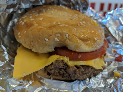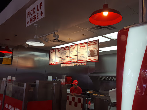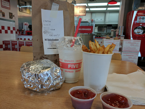 Polite staff, Clean restaurant and bathrooms, however a little more of a wait than other Five Guys restaurants..