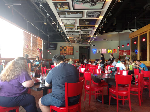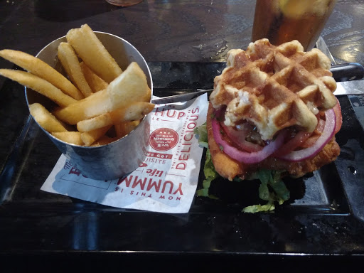 I absolutely love their food. Not all places can adapt their dishes as easy as here, as I am vegetarian, but they do very well. They have no trouble with custom orders, or making burgers that are no longer on their menu (the 5 alarm burger, ie). The service is not always superb, but drinks are always refilled quickly, and the fries are always hot. Sit in the bar area if you do not have kids, as this place can get a little loud and rowdy being such a kid friendly place. On the flip side, its nice to know they understand kids will be messy while eating. :)