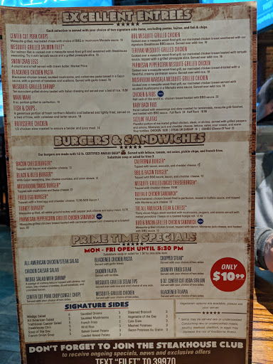 Atmosphere was nice, but thats it. Steaks were overpriced and nothing special. For specializing in steaks, when I ask for medium rare, I expect something close. Not well done. Ill save my money and go to one of the other steakhouses in the area.