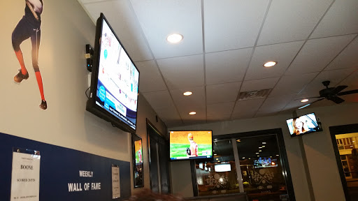 Really nice place, about 25 Flat Screen TVs. The food was really good too. We had the Steak Ribeye Sub, the French dip, and Cheese burger, all were really good. Didnt have the wings, but they looked big and good. Looked like about 9 beers on Tap. Deffiently recommend the place to catch a game or race, and enjoy some food.