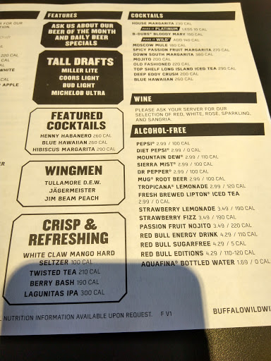 Food is exactly what you expect from a BWW. Take out service has been perfect every time. Dined in once, and the service was good but kinda uncomfortable. The server kept getting very close to being out right rude and then switched over to polite suddenly.