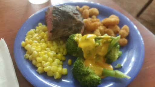 Okay so heres how: you dine at a Golden Corral and I have experience with this trust me you go in early before anyone else gets there especially the creepy crawlies; i.e., families that overtake the buffet, belligerent seniors, disgusting pie hole stuffers. I was here for Sunday breakfast actually had a decent cut of steak and hot slice of french toast, fresh fruit. My server was a pleasant young girl and was very attentive.