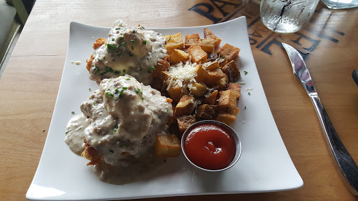 A group of 5 of us stopped in for brunch after a great happy hour experience. The food took quite a while and three of the five plates brought out were ice cold. They took them back immediately but when brought back out they were cold again. We chose to eat them but still mentioned they should check on why they were cold. Sent the manager over and he took them off the bill. The flavor was amazing so if they get the temperature down right this place will be five stars all around. Atmosphere and staff were fantastic. Handled our issues perfectly so went from a bad experience to a good one because they genuinely cared about the issues. Will still come back.