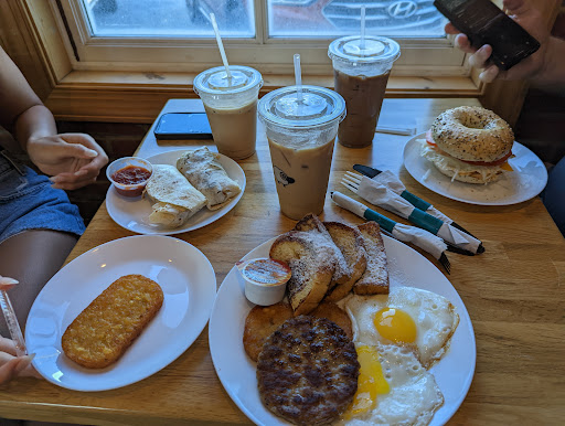 Great place, quiet, Christian atmosphere. Delicious ommelets and baked goods (nutella roll is amazing). Pastry prices are well below the norm, and much fresher and tastier. Pumpkin spice latte is the best Ive ever had. Great outside and upstairs areas to study, well lit. Friendly staff. My favorite cafe in the Northern Va area.