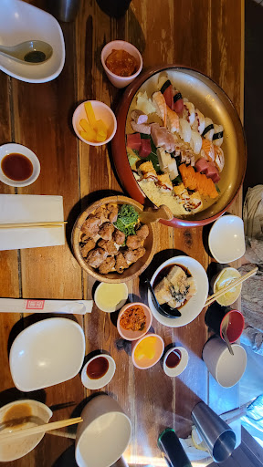 My wife and I had a late lunch here on Sunday. The atmosphere was nice and family friendly. The tables and chairs were all solid and pleasant wood, which I am fan of. The food was tasty and the portions were fair. We had the yakinuku-don and several traditional sushi rolls and regular sushi. We liked it all. The wait staff were pleasant and attentive, without being overbearing.
