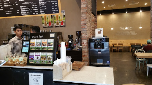 Upper scale bakery. Very posh crowd of people majority korean. The bread choices are good and they do offer Boba tea. Delicious macrons but theyre pretty expensive. Free wifi, make sure you bring headphones, the place is full of loud groups of people.