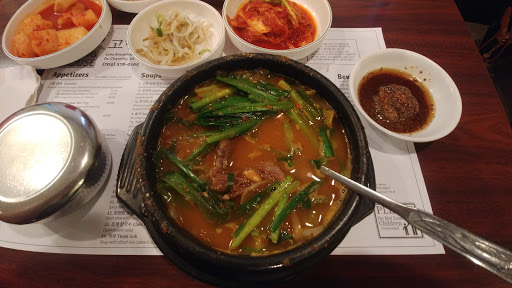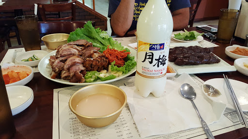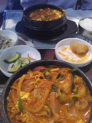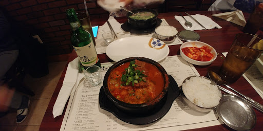 We were staying near Dulles Airport and wanted to try something other than american food or fast food. We found this place from Google Map and thinking it probably has Korean Tofu. We were glad that we were wrong. It is a more traditional Korean restaurant. Most of the patrons there were Korean. Their specialties are Korean Sausages (Soon Dae)and all kinds of different stews. We ordered a small sausage, a beef stew (Somory Gook Bap) and a pork stew (Gam Ja Tang). The sausage taste pretty good and has no meat in it. It only contains noodle and vegetables. The beef stew was just ok. The beef was too hard but the soup was not bad. The pork stew was the best. The pork was very tender. The soup was tasty and spicy.
