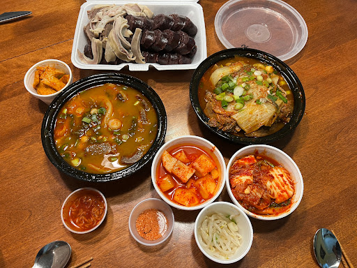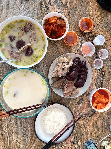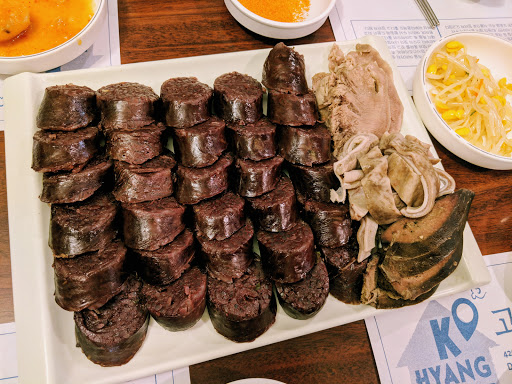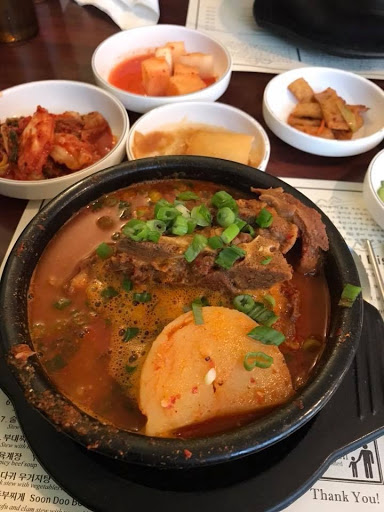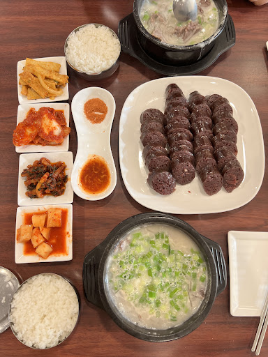 Authentic Korean Food... my friends and I often are the only non-Koreans there. This just shows how authentic and delicious the food is. I tried the blood sausage for the first time there... now, I really like it. I love the short rib soup, and I had it with rice. Everything I tried is delicious. Highly recommended.
