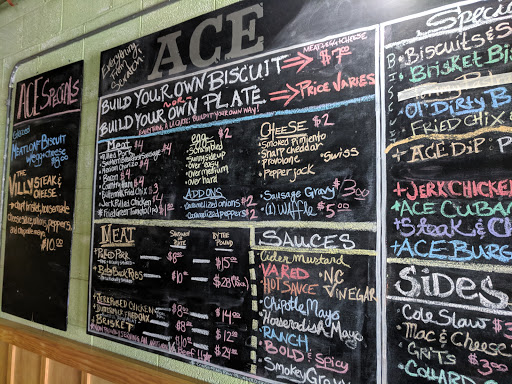 My first experience at ACE was today, and i am not impressed... Google reviews have failed me... That said the meats themselves arent bad. I ordered the pulled pork and beef. The reason they get a 2 star is due to the lack of any good bbq sauces... and by any I mean ANY. Asked for a sampling of the 5 and threw them all away... BBQ sauces make the sandwiches and platters, and they werent good. decent mac and cheese but nothing special, potato salad not great(too much mustard), and the apples were ok. Biscuits were good though! Probably wont go back, which is saddening... Was hoping for good local BBQ