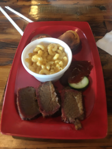 By far the Worst BBQ ive ever had! The ribs were cold and fatty and although the brisket was decent i could have gone to the grocery store for the same quality. The mac & cheese was just gross and tasted like a paste made of flour and water. I figured Id just douce it all in sauce but the sauce tasted like ketchup mixed with water, even the limeaide was horrible!! I was just passing through town and normally would not leave review but the food here is so sickning that I just had to say something. Oh, the collard greens are cooked in sugar, if I could give this place -5 stars I would. Save your money