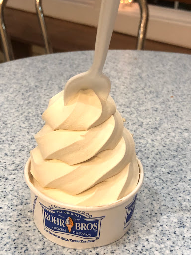 Took the family to Kohr Brothers for the first time. They had 4 flavors when we visited, which is less than normal from what it looked it. The frozen custard wasnt as rich and thick as I like, it was a bit more fluffy and airy. We did like the variety of waffle cones available (my favorite was chocolate dipped with nuts.) While there is plenty of parking spaces (no one was there but us), the shopping center is really cramped and traffic gets heavy at that intersection. Also, the floor of Kohr Brothers was quite dirty.