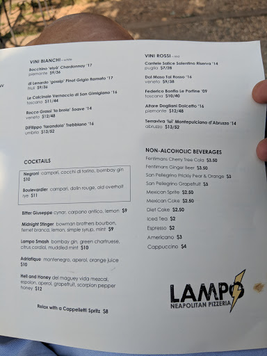 I was a little worried about the thin crust, tiny Italian menu, and having to sit outside with our kids in the hotness that is VA summer. But Lampo delivers on all fronts. Amazing, delicious, Neopolitan pizza, great wine and beer selection, and a kind staff changed my mind. Just come, you wont be disappointed.