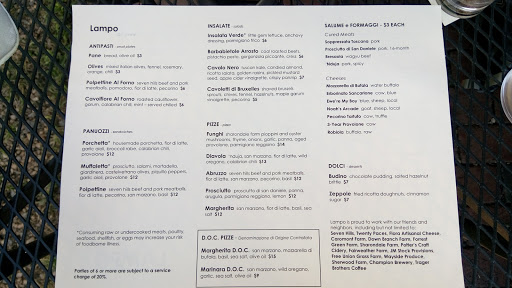 I love food, and these guys know how to do it right! Simplistic, classic Italian with phenomenal flavor combinations. An ever changing menu that perfectly displays their passion and knowledge of cooking. Fantastic customer service, friendly staff, warm atmosphere, best eats in town. Its my new regular. Everything is delicious! I love lampo. :D