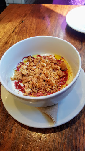 The porchetta sandwich might just be the most perfect sandwich in existence. Also, I appreciate so much that they are open until midnight. Ive been in to Lampo with my boyfriend for a more romantic multi course dinner, sat at the bar with a friend for a drink and pizza and this was when I was then introduced to the masterpiece of the porchetta. Which I now crave constantly and if I am off work late and hungry I will stop in to treat myself to the most perfect crust folded with melted fresh mozzarella, broccolini, garlic aioli, an Italian chili and house made porchetta. For anyone that doesnt know what this is: {Porchetta is an Italian pork belly (think thick bacon) generally wrapped around a butterflied pork tenderloin, rolled with savory herbs and goodness}... Yes... Now isnt your mouth watering? The chocolate pudding is to die for as well, with a salted hazelnut brittle. I loved the cauliflower dish, the beets, and you cannot go wrong with any of the pizzas. Really, you cant go wrong with anything on the menu. The staff is attentive and helpful, easygoing and friendly. I love lamp.o
