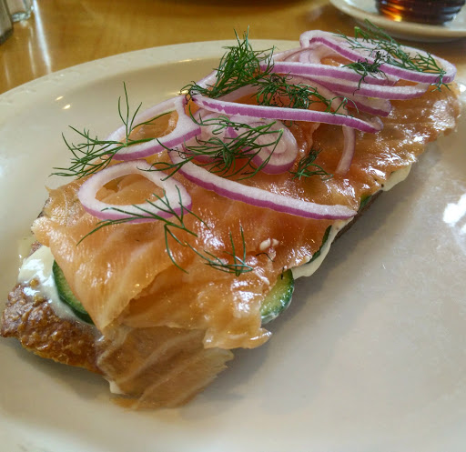 We ate a great lunch and then took some pastries and a multi grain bread with us for later. All of it was outstanding. We heard it was good and it really is. It is a bright friendly restaurant and bakery/patisserie. The food and the service are great and-of all things-there is ample parking.We plan to try the brunch and breakfast menus next.