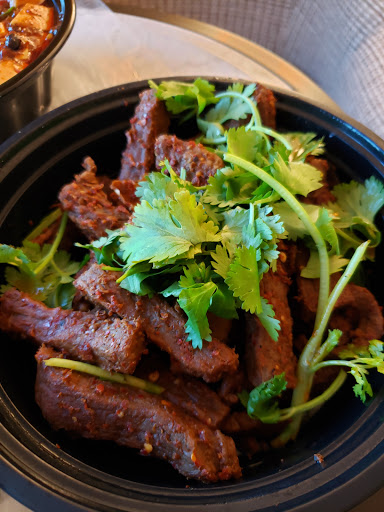 Easily the best Chinese food in Charlottesville and quite possibly all of VA. The signature "hot and numbing" flavor is distinctive and delicious. Its easy to see why Peter Chang has a cult following. The egg drop soup has corn in it, which added a bit of extra flavor to a simple but well-executed dish. The dry fried eggplant was like spicy basil eggplant frech fries - well-seasoned and crispy. The mapo tofu was complex - rich, earthy, smoky, spicy. My partner enjoyed his hot and sour soup and chefs special duck in clay pot too (although just be aware, it is a huge portion that could easily feed 2+). The food came quickly (too quickly actually - almost all at once - but who cares, its the food that matters).