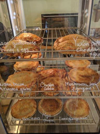 Absolutely fantastic food. I went with two friends for lunch and we each got a savory pie. The chicken&bacon and the meatball marinara are packed full of amazing flavor. The spring greens (asparagus, broccoli, and swiss chard) was a little more subdued but still delicious. The crust tasted fantastic as well. Theyre not that expensive either; they were $6.50 when we went (check their Facebook for current menu and prices). Ive paid double that for food that wasnt half as good as what I had here. For desert we tried four slices. The peanut butter pie was a bit too strong for my taste. The apple pie was good, but I didnt feel it was anything special. The last two were definite hits, though. The strawberry rhubarb was everything youd want it to be - sweet and a little tart, but not too much. The citrus pie was something special as well; almost impossibly creamy with a somewhat subtle rather than overpowering citrus flavor. The location itself is rather small. Four tables inside with another two outside. All the pies are ready for takeaway, hot or cold, so theres no waiting. The owner and staff were very friendly as well. We all resolved to go back next time were in town - if not to eat there, then certainly to bring something back to eat for dinner!