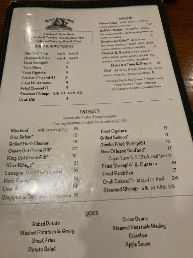 Great bridge restaurant that has been around for many years. I typically order the peel n eat shrimp and they are delicious. Courthouse Cafe has great she crab soup as well. I am not a big meat eater however when I have dined with others I have been told the prime rib is very good. The place is very cozy and has a lot of wood. There are very unique menus that mimic court dockets. All staff are very friendly and helpful. You typically get a little bucket filled with crackers and breadsticks and butter to snack on while you are waiting for your entree.
