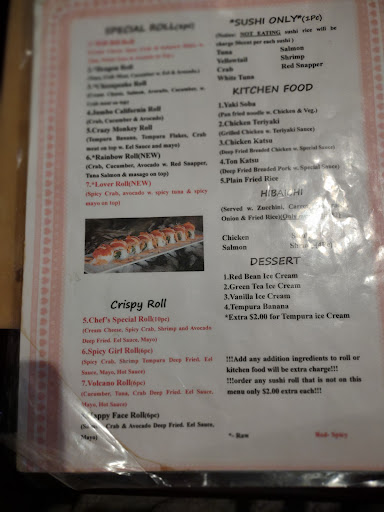 Where to begin this down hill ride in the snow on a bobsled with no breaks?? Will start by letting everyone know that I could not leave less than a 1 star rating. We were able to walk right in and sit down which was nice (though this turned out to be the high light of our dinner). There was only 2 additional empty tables which seemed promising. The server quickly showed up to take our drink orders (2 adults and 2 kids ). Then we placed our order for 3 rolls, 4 pieces of sushi, 3 soups and a salad. Soups and saldad arrived promt. Then the waiting game started and 25 mins passed with no sushi. Seeing it was taking so long we order Steak and Scallop hibachi and 2 additional rolls. 35 mins in to being there our first order showed up. From the start the sushi was not appealing and looked very plain. As expected once we started to eat the sushi we quickly realized it was made from low quality small slivers of fish. Being the rolls were made from small pieces of fish that is probably why they were edible. We ate most of the first order but were quickly turned off. Though we were already committed to being here to eat we placed one more order for 4 pieces of sushi and 2 additional deep fried rolls. Our second order showed up still poor quality fish but a little better taste though they were again very small rolls. An hr into the meal our last two rolls showed and quickly realized a repeat of the 5 rolls that came before them. 1hr5mins later the hibachi showed up consisting of 2 under cooked scallops, 8 small nickel size chewy pieces of steak, steamed Rice that was not fired or "sticky", and steamed vegetables all of which had no flavor making it very bland. I could pick so many things apart from the dry ginger with the sushi to the watered down soy sauce. I will have to admit being we had been there for 1hr 15mins at this point we ventured to order desert and that was actually very good. The tempura Ice Cream and fried bananas were very good and make me think they might of got that from next door because there is no way they produced that in this resturant. We paid our check of 89.00, left, vowed to never return and will only stay loyal to Sushi King.