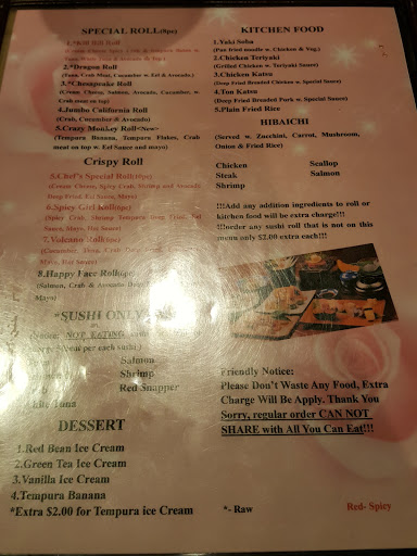 This is the best all you can eat sushi place in all of Virginia everything is made to order nothing is sitting out and you not knowing how long its been there the restaurant is small and quaint and very private the staff is very nice and quiet and attentive to your needs I have eaten at this place many times and it seems to get better and better with each visit
