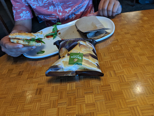 Placed an online order. Picked it up and was only given one cup for lemonade when two drinks were ordered. Sandwich had tomato (not ordered) and very little turkey on a huge piece of bread. I could hardly find it!! Clam chowder was delicious.