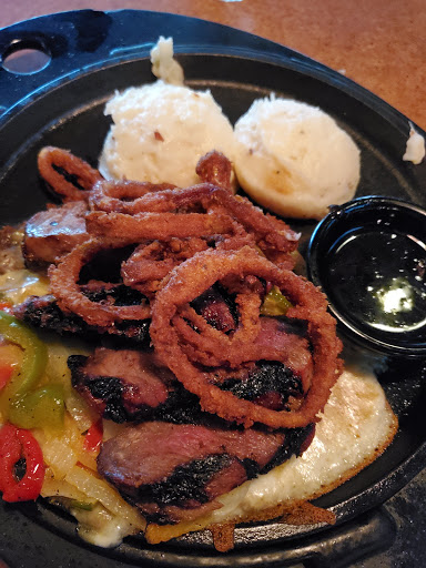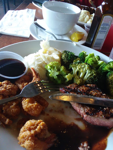 My husband and ate here tonight and it was the first time for me in 8 years. I quickly remembered why I stopped going. The service started off very slow as we had to wait about 10 minutes just to see our server and place our drink order, also ordered an app with our drinks and then ordered dinner when she came back with beverages as normal. Appetizer came out and 2 minutes later so did our entrees. Very bad timing on the kitchen staffs part. They werent even busy. They did ask to put our food back in the kitchen until we were ready but we didnt microwaved food so turned it down. When the waitress came to refill our drinks instead of asking us to pass her our glasses she reached her arm across my plate and put her armpit in my face to grab my glass. So uncool! Then had to ask twice for our check and turn down dessert twice. Very disappointed and reminded why I stopped going. Will not be back as no one said they were sorry or even made an attempt to make the service better. Paid full price to be disgusted and eat cold food!