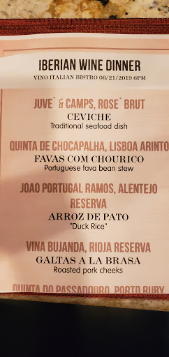 “Wonderful Wine Dinner” We went to Vino for their French wine dinner about a week ago and it was definitely one of a kind. The wines were very tasty and the food that was paired with each wine was amazing. The Scallops were by far my favorite but the braised rabbit was something I would have never expected to taste so good.