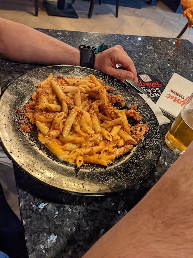 Quick at service. Pizza very good. Bottle beer prices for domestic beer a little in high side ($3.50 for a Coors Light is actuay VERY pricey) Good place to go.
