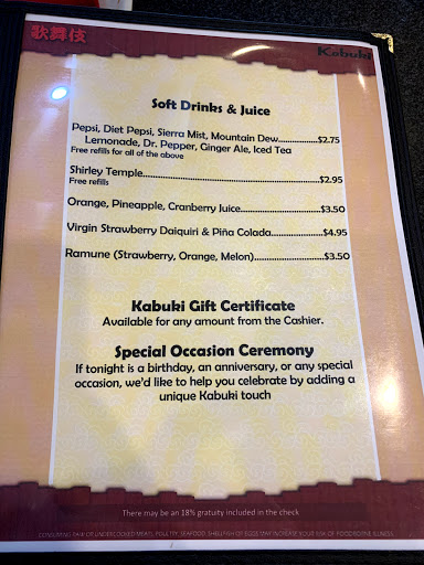 I have been to Kabuki without issue several times over the years. However, on 5/1/15, we went to celebrate my sons 14th birthday. The restaurant was almost empty, save for one table. We were seated at an empty table but placed on the very corner side. I thought my son would like a better seat, so we moved to the seats directly in the front. When the waitress returned, we were told we may have to move if another party came in. I said that didnt sound quite fair to arrive early and be penalized for doing so and having to move if a larger party arrived. We were told we had been seated already and may have to move back where we were first told to sit. The waitress said this was their policy. I said to tell your manager that I dont agree with that kind of policy. I considered leaving but wanted my son to enjoy his dinner. Our soup and salads had arrived, when a different waitress came over and rudely said, "You have to move because there is a party of 7 that wants to sit together. I paused for a second then said, "I no longer wished to eat here," and stood up. A different waitress said, "Never mind, they want a table to themselves." So, we were the first to be seated yet had no say where we sat at the same table we were "instructed" to sit at. We were told to move from a spot my son would enjoy more to make way for a later arriving group, yet that group was allowed to sit at a table of their choosing as a private group. Ive no interest eating under such unequal restrictions. I will never return to Kabuki.