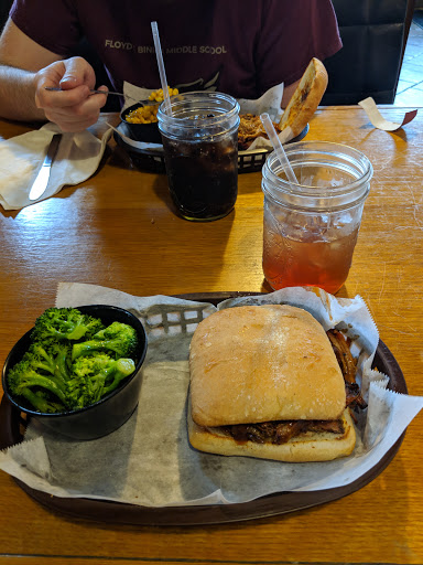 We had a truly great experience. The wait staff was very friendly and prompt to respond to our request. The BBQ was great. I tried the sampler with St. Louis ribs with a thick flavorful bark. The Chicken wings were crisp and fully cooked with a wonderful medium heat. The Chicken tenders were tender. The CFO (wife) had the pulled pork and she loved it. The BBQ sauces (3) were tasty. The Vinegar base sauce was sweet, with vinegar bite.. The catsup based BBQ sauce was good and had a strong after bite. I didnt card for the mustard based BBQ. Its the first BBQ place Ive been too, that didnt serve beer and didnt have baby back ribs. Price was great. The local EMTs showed up for dinner at the same time.. So you know it had to be good.