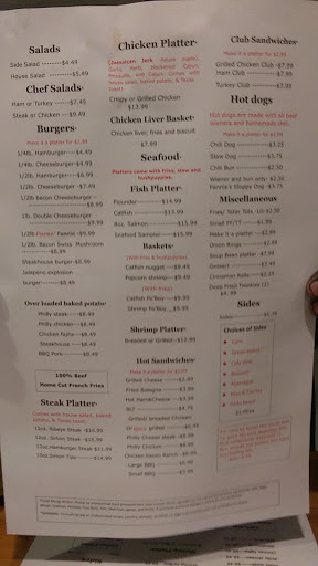 The Owner is so nice - Makes you feel right at home.!!! The food is SPECTACULAR!!! Nice atmosphere and very clean.! We Love Fannys !!!!! We eat there often.!!!! Best place in town to eat .!!!!!!!!!!