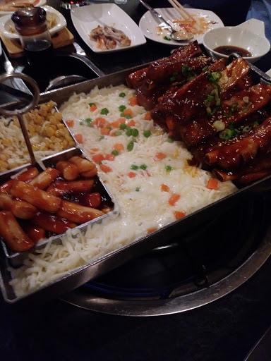 BBQ21 is a korean BBQ/shabu shabu place with a twist. Their specialty dish is the cheese baby back ribs, a dish that is cooked in the kitchen but kept warm tableside by the korean bbq grill. The ribs come out on a large rectangular pan in whatever spices you choose, ranging from teriyaki to super spicy. Also in the pan is a side of korean spicy rice cake (ddukbokki) and some warm cheese corn salad. But most of the pan is filled with mozzarella cheese with jalapenos sprinkled throughout. As the cheese melts, you slather on a spoonful of melted cheese onto the rib and then eat them together. It is best eaten with a disposable glove which they give you so it doesnt get messy. The ribs are cooked well, seasoned with a thick BBQ sauce and the whole experience is interactive and fun :) they also cook fried rice on the pan immediately after and youll definitely want to save room for it, its delicious! Also their portions are pretty generous, so you will definitely leave stuffed! They also have normal korean BBQ menu as well as a combination of korean street food items and traditional meal options. So far we have not gone wrong when we came here. Definitely will become a frequent flyer here! UPDATE: Since we first started coming here we have tried a number of their other dishes and they are all excellent. We had their samgyupsal (pork belly) which was fantastic, they also have a variety of spicy dishes covered in cheese which is always delicious, and their sushi was surprisingly good. Their service is impeccable as usual, although during busy times you may have to wait a few minutes but overall very very happy! Love BBQ21