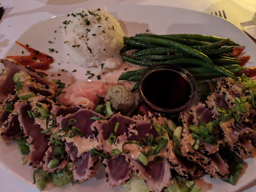 We recently had dinner here around 6 PM on a Saturday. The place was nearly full when we arrived and there was a wait when we left. The service was attentive but not very friendly. The Bang Bang Shrimp and steak were both great, the Lime Tomato Garlic Sauce was delicious, the swordfish was good, the broccoli was plain, and the green beans were awful. The bill for us was much higher than most nights out. We didnt feel that the overall quality of the experience deserved the cost premium.