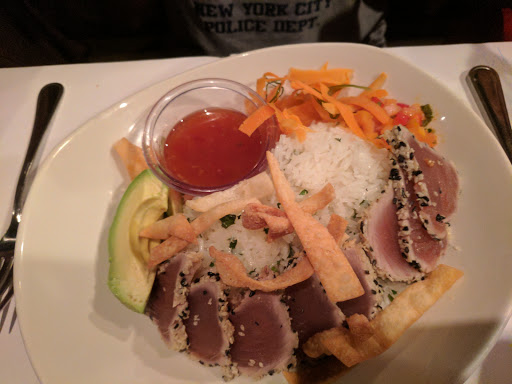 Wife and I were in the mood for seafood and we had a coupon to get an entree free with the purchase of an entree. While weve been to the Centreville location several times, this was our first visit to the Fairfax one. Everything was delicious! We ordered a watermelon martini (for the wife) and it was actually really good! If Im going to drink a foo-foo drink, I at least want to taste the advertised fruit instead of pure sugar, and this drink was a perfect blend of watermelon with a slight hint of alcohol. The fresh baked bread is amazing. Crisp on the outside, warm and soft on the inside...talk about self control to not eat everything in one gulp! We ordered the sashimi appetizer and were pleasantly surprised with the size of the dish. It was a great plate of tuna, greens and siracha drizzle. My wife ordered the scallops and I ordered the crusted haddock. Both dishes were perfectly cooked, flavorful and filling. The thing I appreciate is that there are plenty of wild caught fish to choose from with only a couple fish being farm raised. There arent many places that offer such a wide variety of seafood choices, and the fact that Bonefish is aware of how much better wild caught fish is makes me have it at the top of my seafood list!