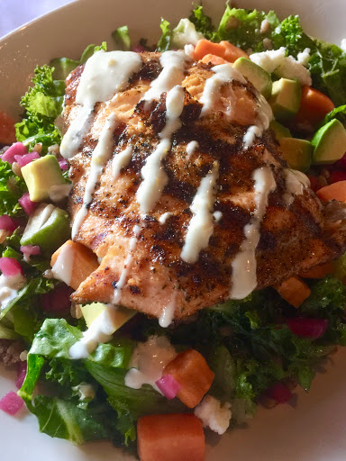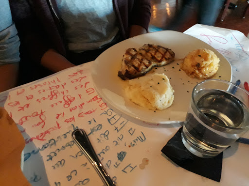 On a Friday night at 6:40 pm the wait time was supposed to be 25 minutes but it turned to 50 minutes based on my phone timer ! Fish and chips is excellent and steak was Delish. They forgot our bang bang shrimp. Ugh. Food is good otherwise. Taking a star off as the service today, SUCs. The server took forever to get here, she knows nothing about the menu and when we told her we wanted the martini special that was emailed to us she said it was not available. Then I showed her the email I had received and it became available. There were four of us. We had a bread and appetizer to start while we decided on the menu. Then the bread was all gone we had to ask 3 times for another loaf and was told t is still in the oven. Food showed up one at a time. But good is good as always. Watermelon martini SUCs do not order!!! There were bones in my salmon